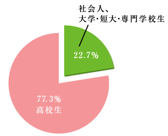 直近5年を例にとると、本校へ入学する学生の22.7%、およそ5人に1人が、一般社会人、大学・短大・専門学校生の方の入学です。